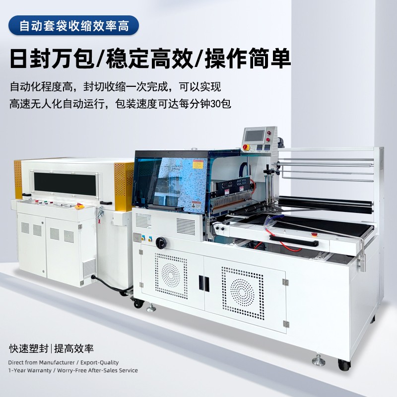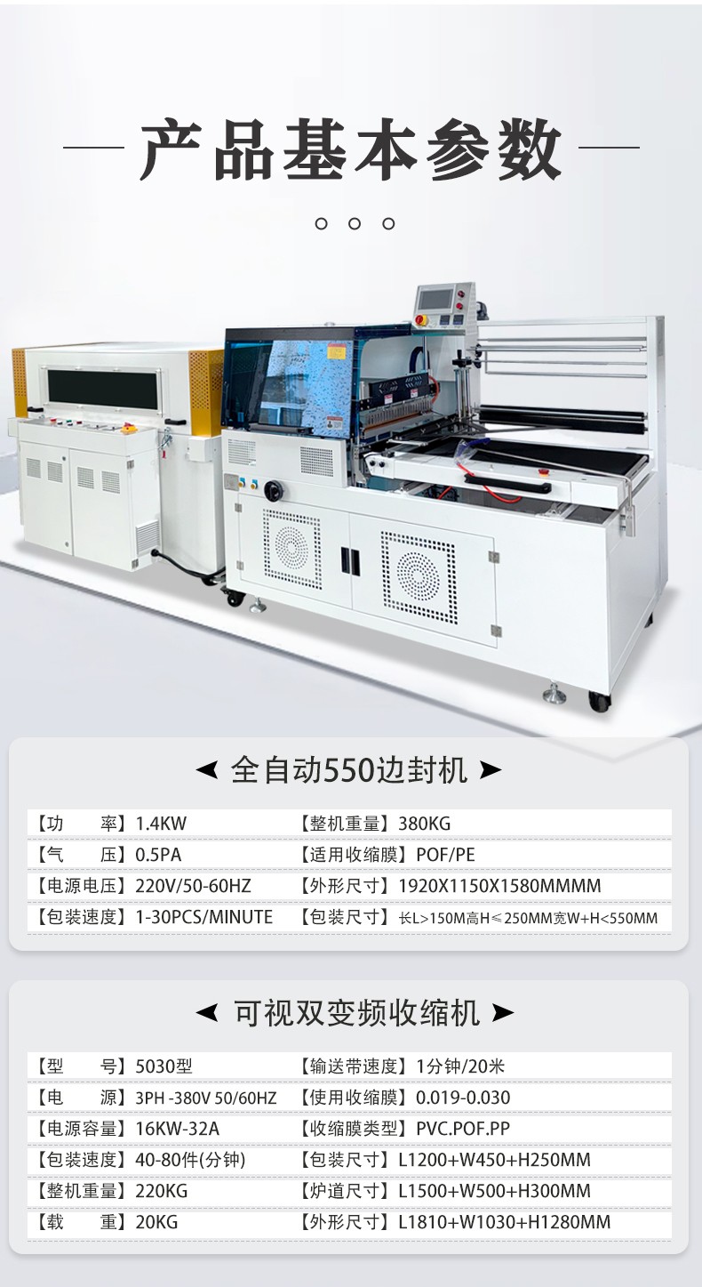 全自动边封热收缩包装机自动化程度高,边封设计使产品包装长度无限制