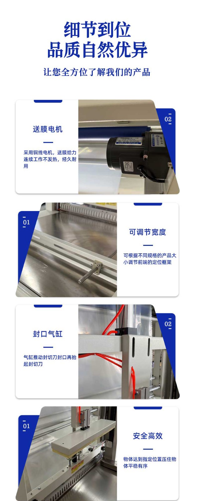 类型:根据封口方式可分为热封袖口包装机、冷封袖口包装机、超声波封口包装机等;根据自动化程度可分为手动袖口包装机、半自动袖口包装机和全自动袖口包装机。