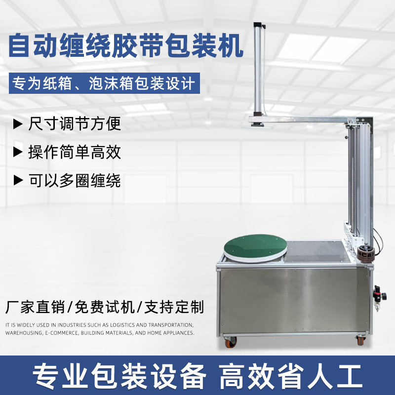 在成本控制层面,其采购成本仅为全自动胶带缠绕机的 1/3,且结构简单、易损件通用,后续的维护保养成本更低,对预算有限的中小型企业十分友好。从使用成本来看,人工干预环节可及时调整胶带张力,避免胶带浪费,加上无需专业技术人员操作,大幅降低了人力成本投入。