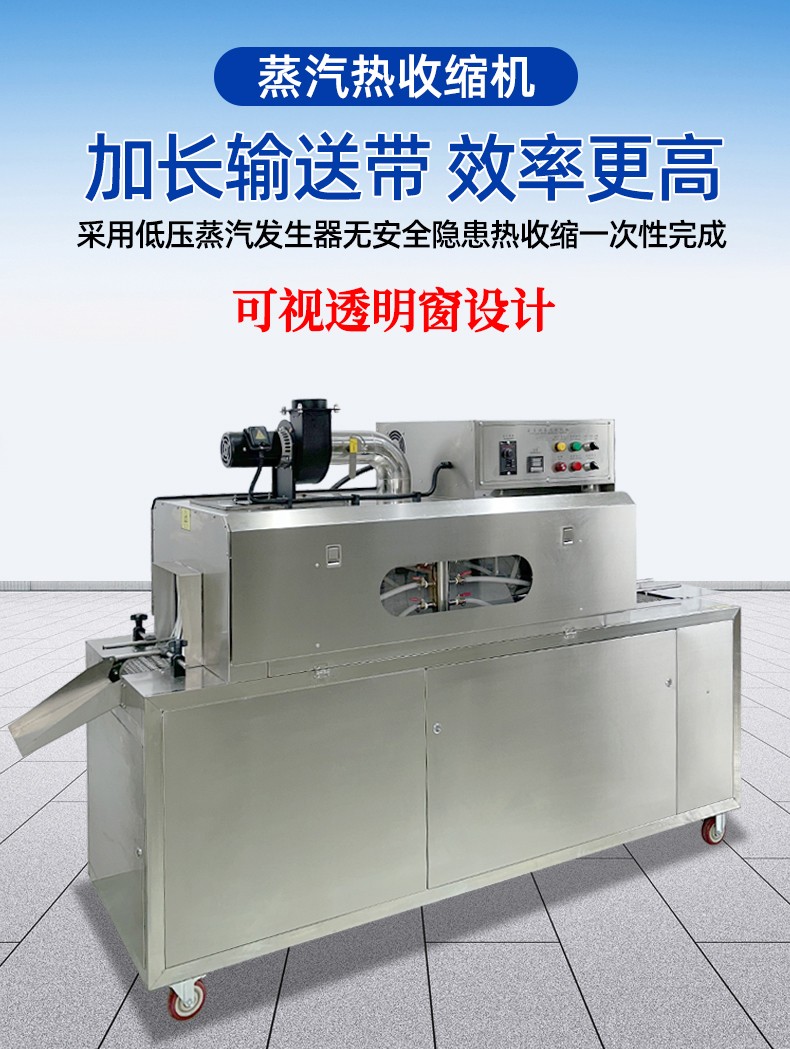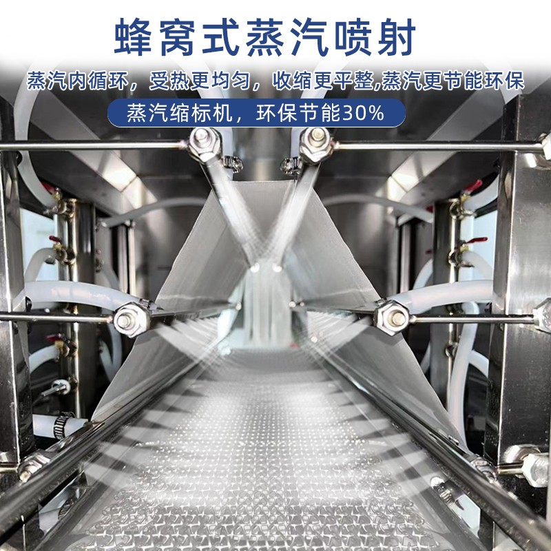 蒸汽收缩机的蒸汽能够全方位地接触薄膜,使薄膜各个部位受热均匀,收缩效果一致