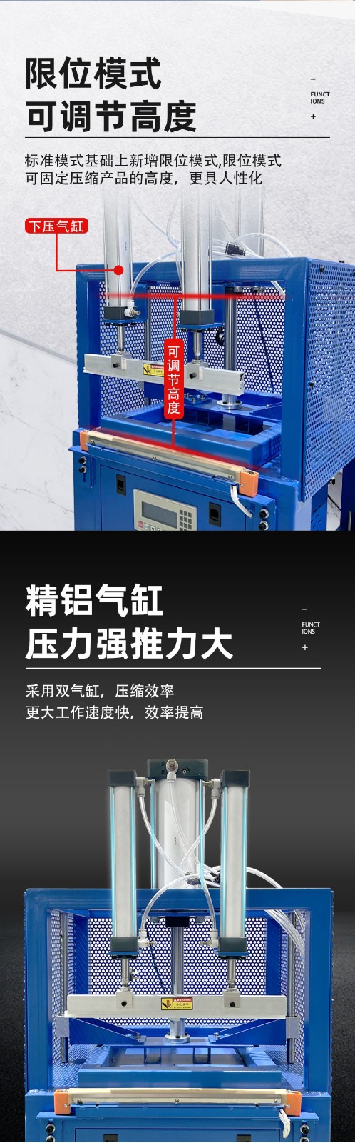 - 包装效率高:能够快速完成压缩和封口操作,每分钟可进行多次包装,适用于批量生产。